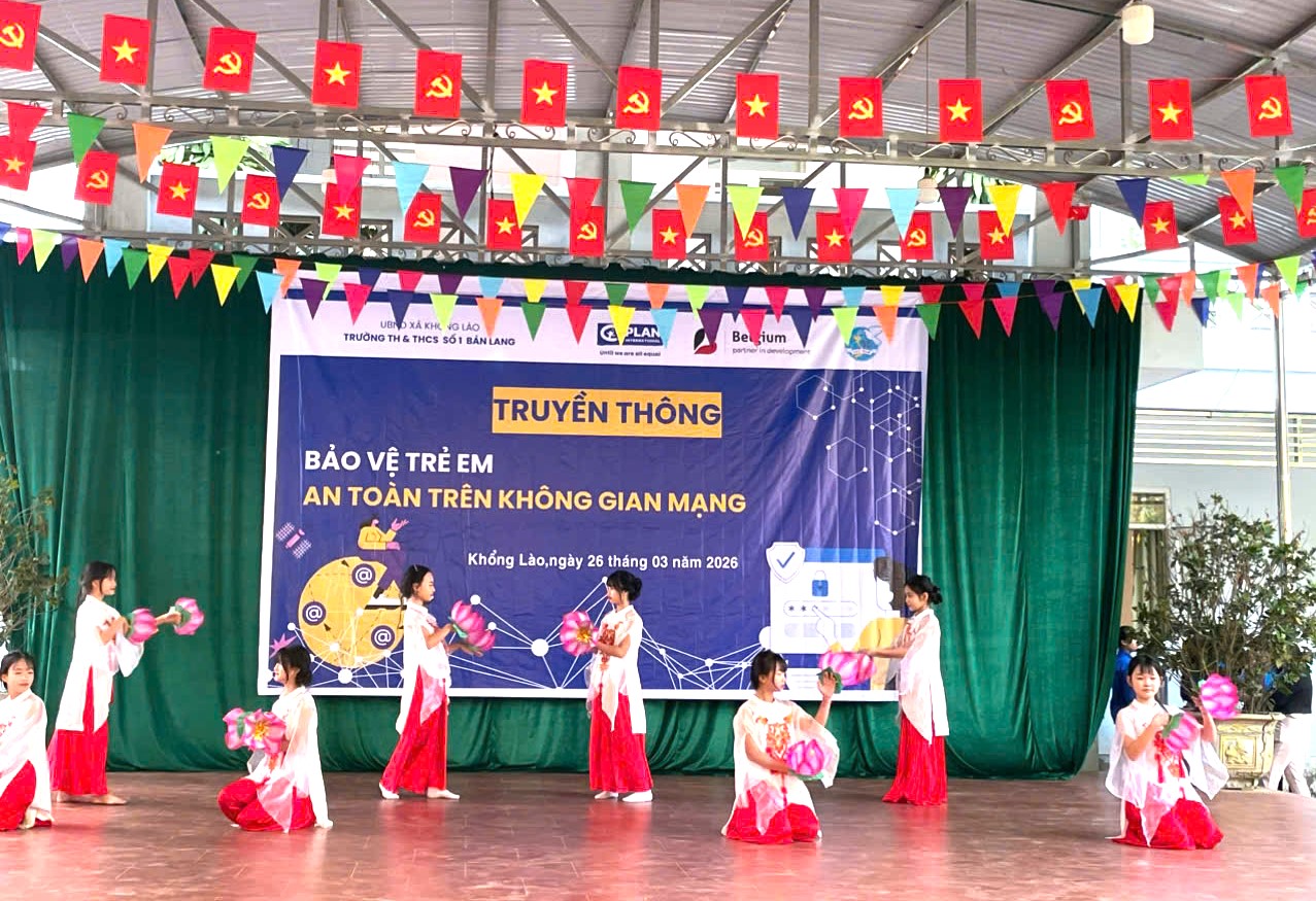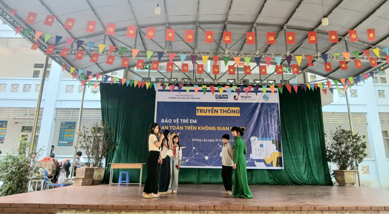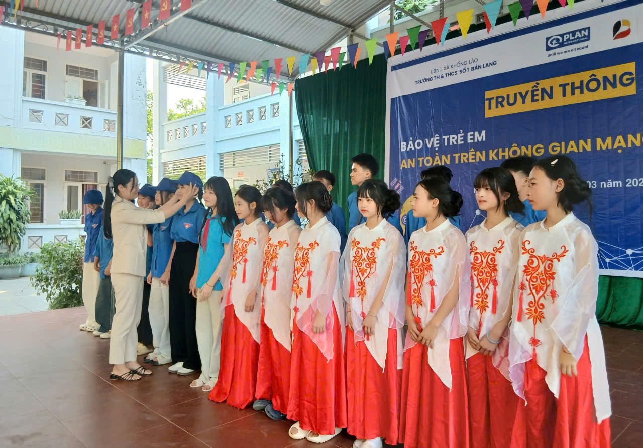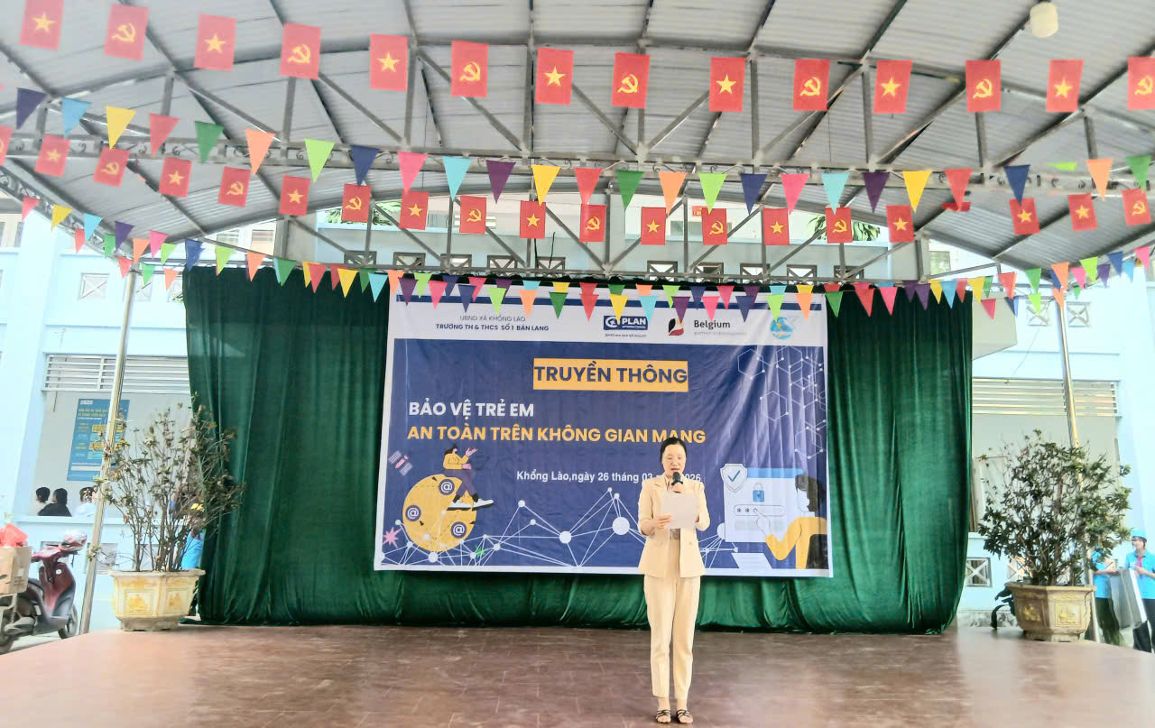 Sáng ngày 26-3 trường TH & THCS số 1 Bản Lang Ban phối hợp với Ban quản lý dự án Plan xã Khổng Lào tổ chức sự kiện truyền thông do trẻ em dẫn dắt chủ đề “Bảo vệ trẻ em an toàn trên không gian mạng”. Tham gia buổi truyền thông có sự góp mặt của: Đại diện Tổ chức Plan, Ban giám hiệu nhà trường, Thành viên Ban tham vấn thanh niên, ban đại diện cha mẹ học sinh trường và các lớp cùng cán bộ, giáo viên, nhân viên và 441em học sinh.