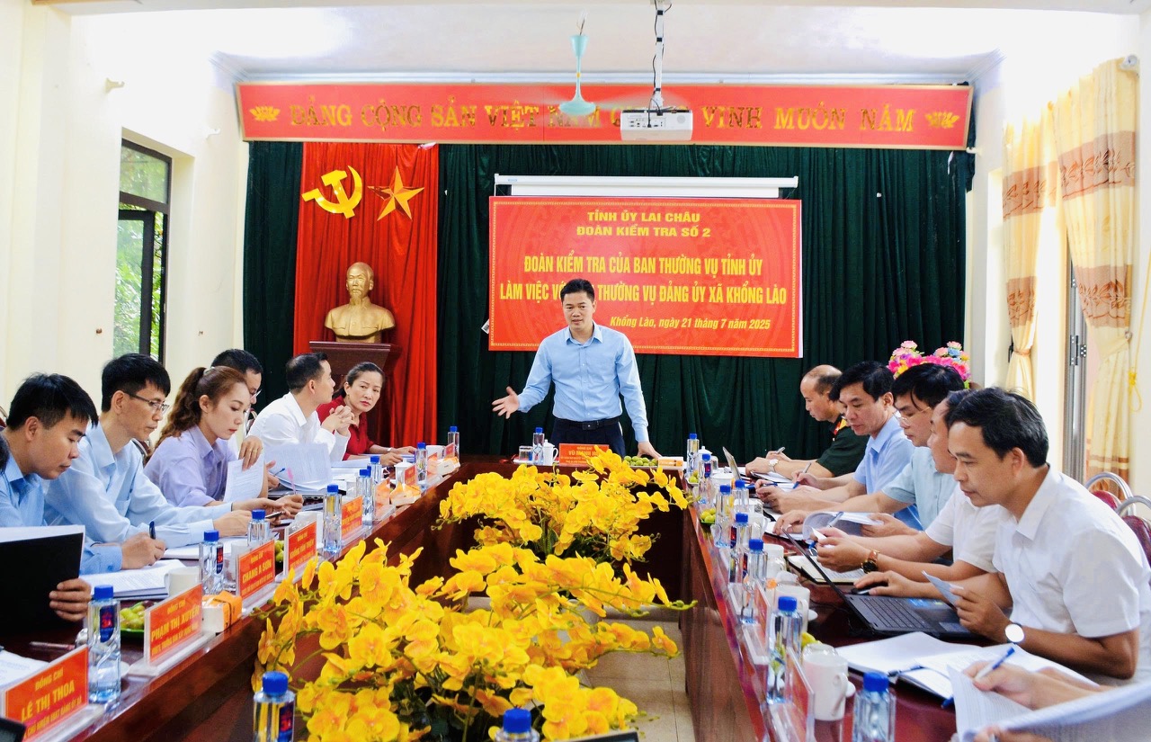 Phát biểu kết luận buổi làm việc, đồng chí Vũ Mạnh Hà - Ủy viên Dự khuyết Ban Chấp hành Trung ương Đảng, Phó Bí thư Thường trực Tỉnh ủy biểu dương, ghi nhận sự cố gắng của xã Khổng Lào trong vận hành chính quyền địa phương 2 cấp. Cơ bản đồng tình với các ý kiến của thành viên Đoàn kiểm tra tại buổi làm việc, đồng chí Phó Bí thư Thường trực Tỉnh ủy đề nghị xã ghi nhận các ý kiến tham gia của thành viên Đoàn kiểm tra để thực hiện sớm một số nhiệm vụ cần thiết trước mắt như nâng cấp mạng nội bộ (nâng cấp gói dịch vụ hệ thống mạng tại xã), bố trí cán bộ làm công tác chuyển đổi số để thực hiện nhiệm vụ.