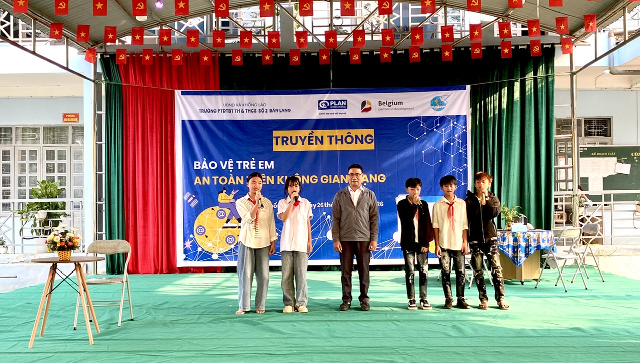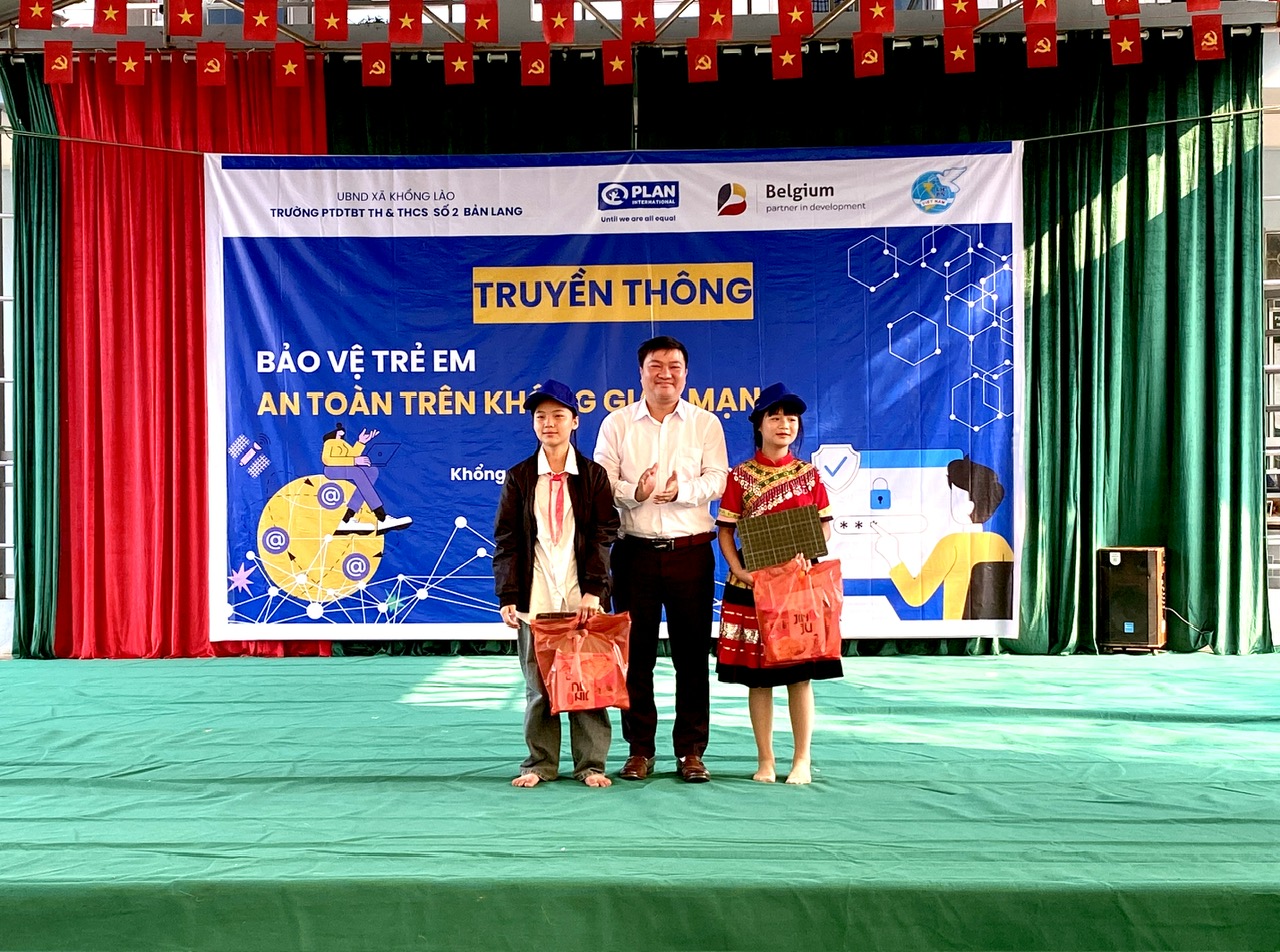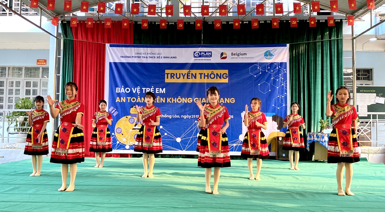 Thực hiện Dự án “Bình đẳng giới và nâng cao vị thế phụ nữ và trẻ em gái dân tộc thiểu số” Tại Quảng Trị và Lai Châu, ngày 26/3, Trường PTDTBT TH&THCS số 2 Bản Lang phối hợp với Tổ chức Plan International Việt Nam tại Lai Châu tổ chức buổi truyền thông do trẻ em dẫn dắt với chủ đề "Bảo vệ trẻ em an toàn trên không gian mạng".