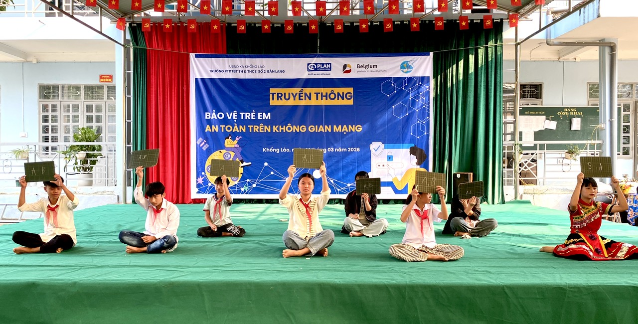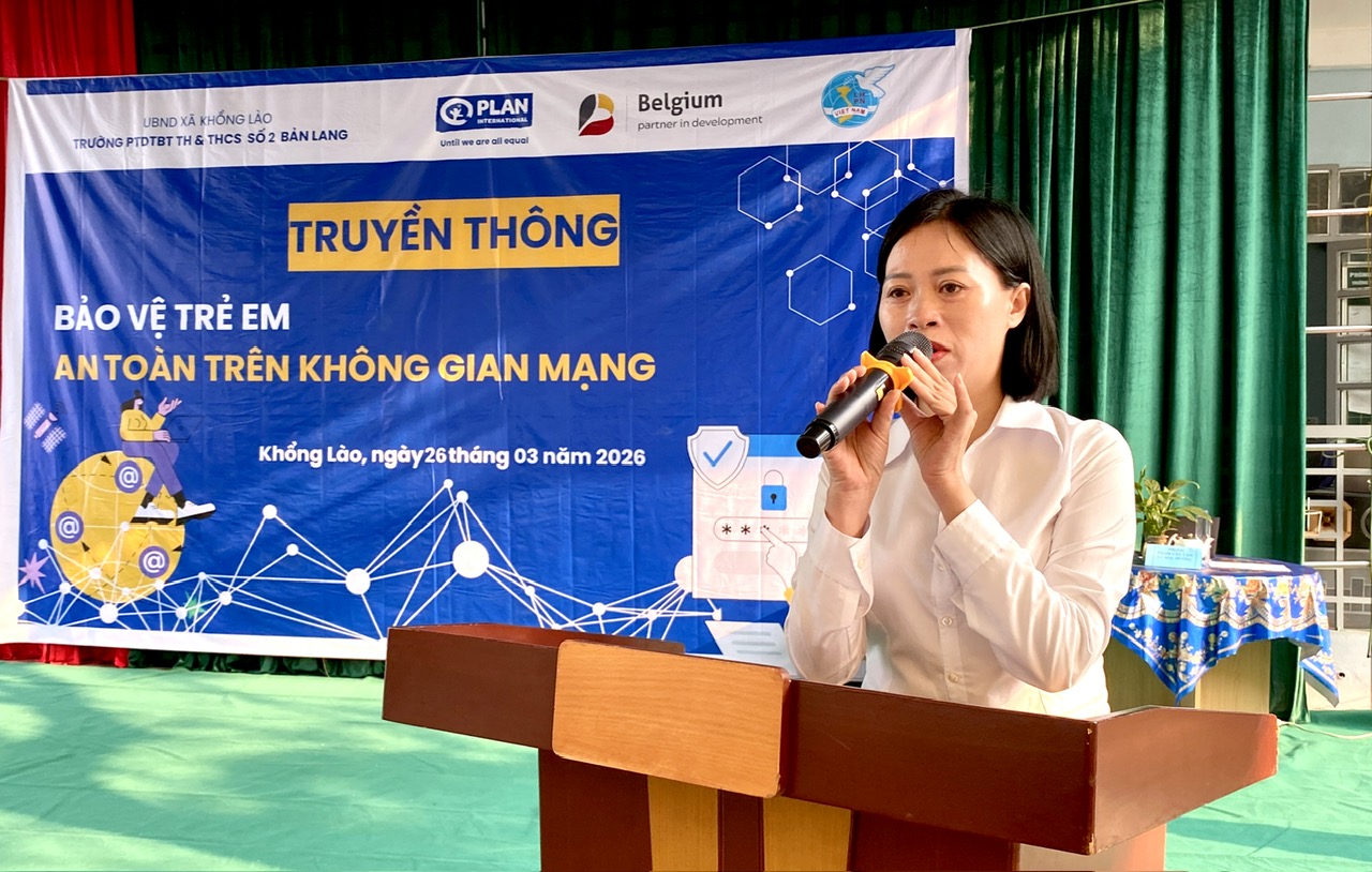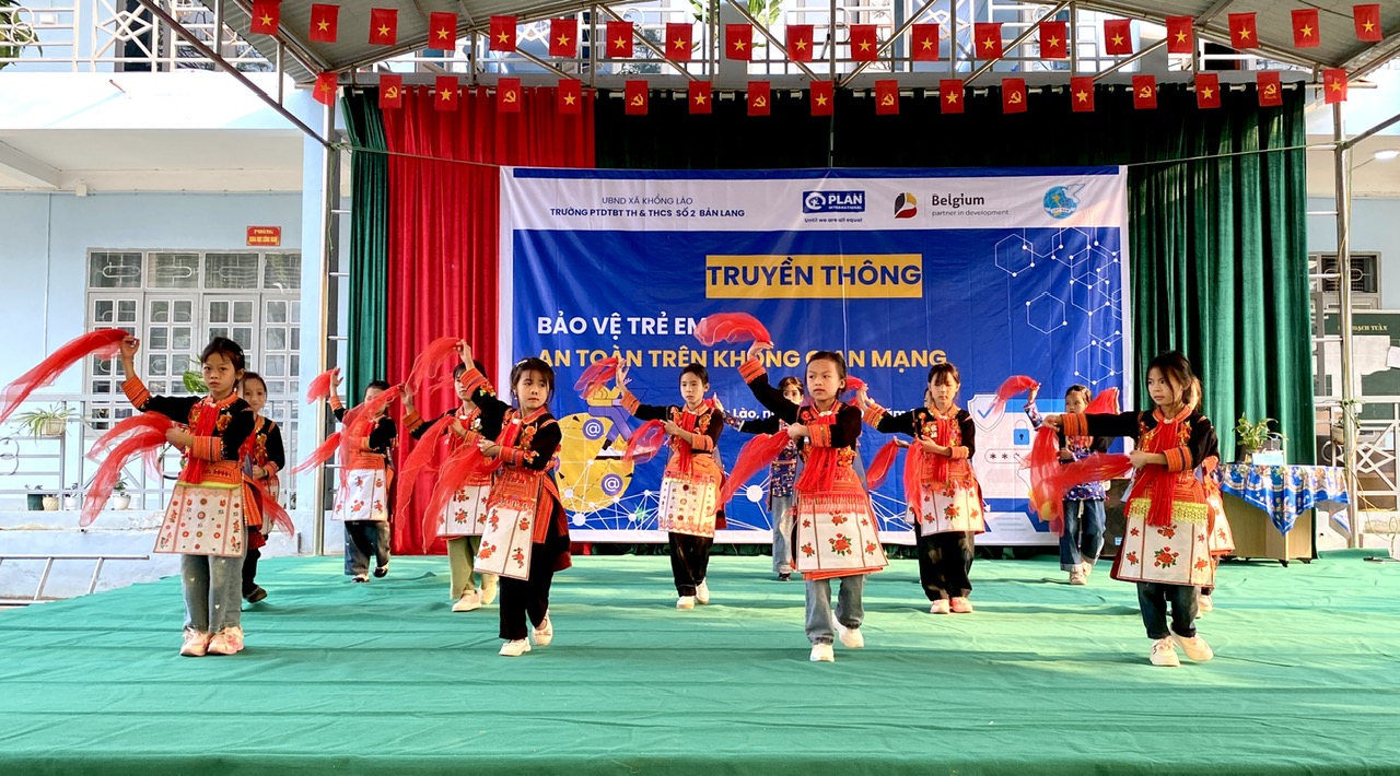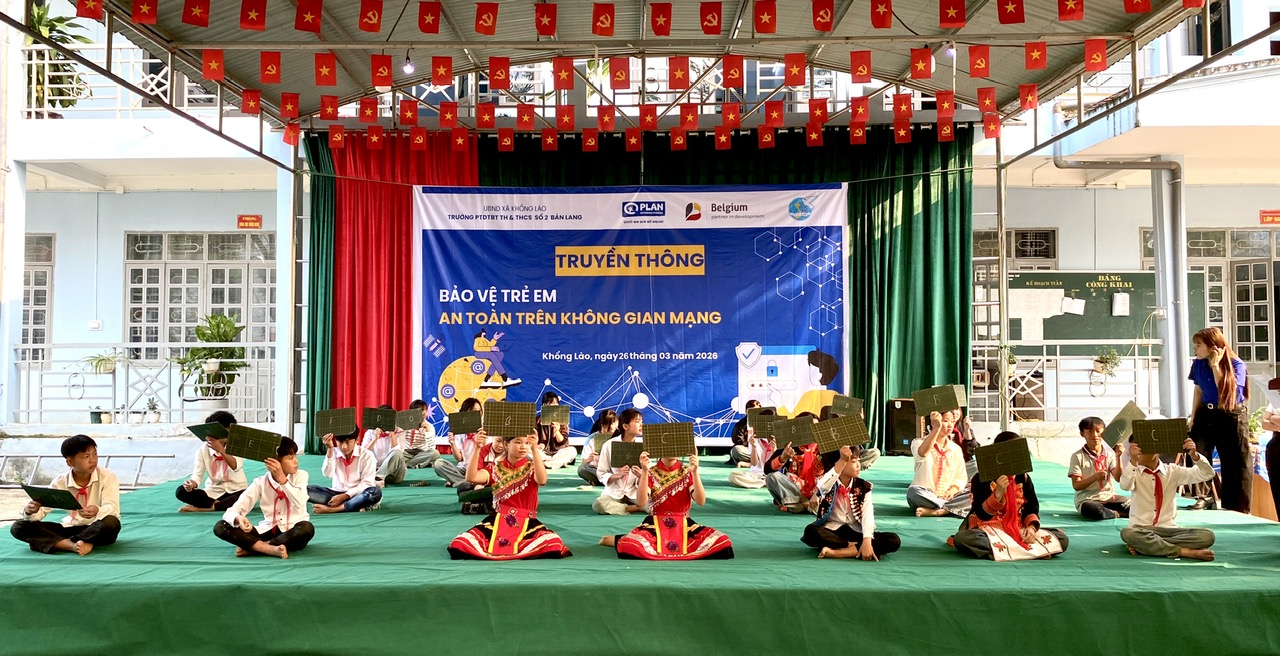 Thực hiện Dự án “Bình đẳng giới và nâng cao vị thế phụ nữ và trẻ em gái dân tộc thiểu số” Tại Quảng Trị và Lai Châu, ngày 26/3, Trường PTDTBT TH&THCS số 2 Bản Lang phối hợp với Tổ chức Plan International Việt Nam tại Lai Châu tổ chức buổi truyền thông do trẻ em dẫn dắt với chủ đề "Bảo vệ trẻ em an toàn trên không gian mạng".