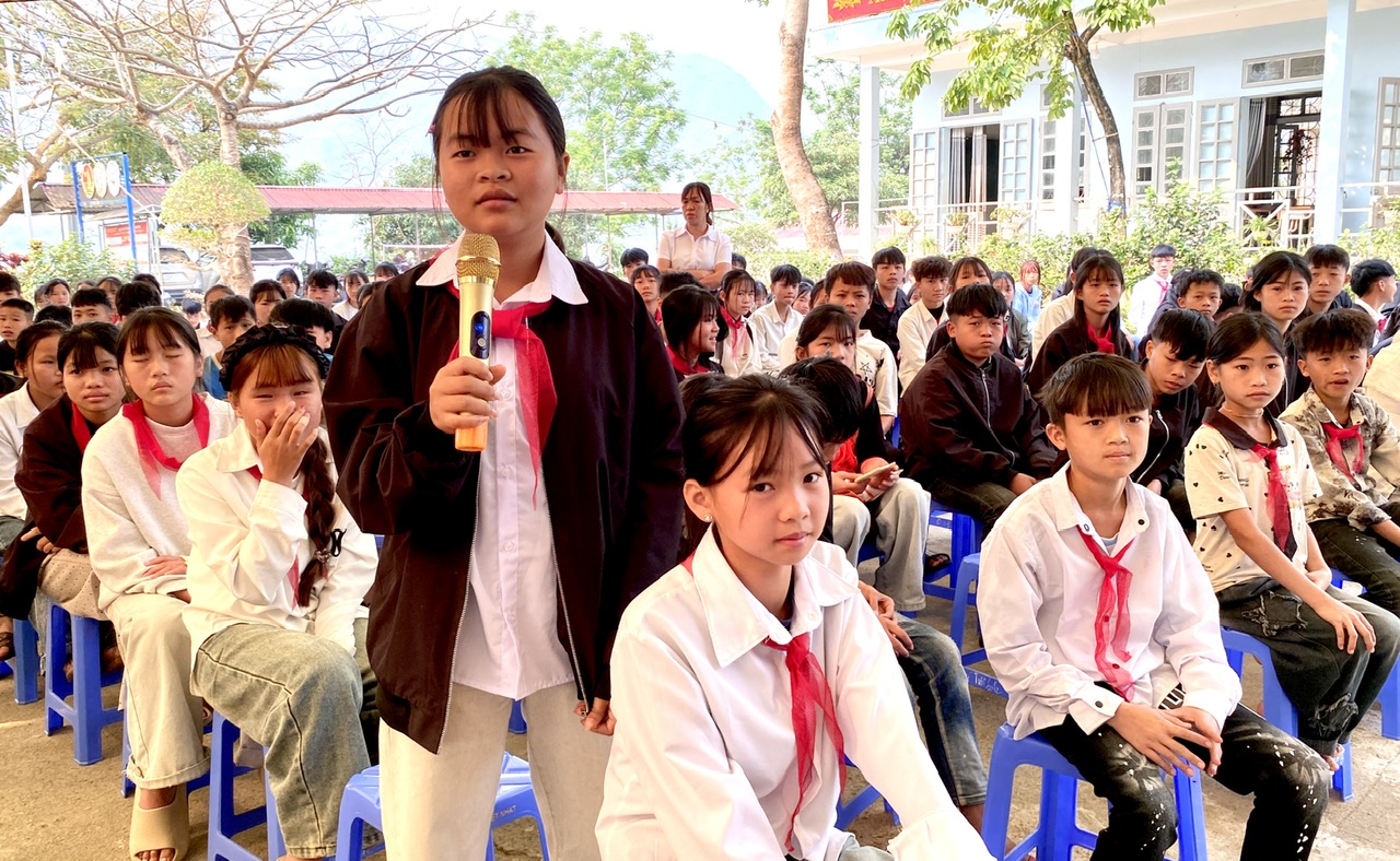 Không chỉ tuyên truyền, phổ biến kiến thức một chiều, các thầy, cô giáo Trường PTDTBT TH&THCS số 2 Bản Lang còn đưa ra các câu hỏi, tình huống để các em học sinh trả lời, giúp các em nhận diện các mối nguy hại từ môi trường mạng như: hành vi học sinh bị quấy rối/xâm hại tình dục trên môi trường mạng; cách để không bị mất tài khoản Facebook khi phát hiện tài khoản được đăng nhập trên thiết bị lạ; các hành vi không an toàn trên môi trường mạng; tư vấn hoặc hỗ trợ về bạo lực, xâm hại trẻ em….