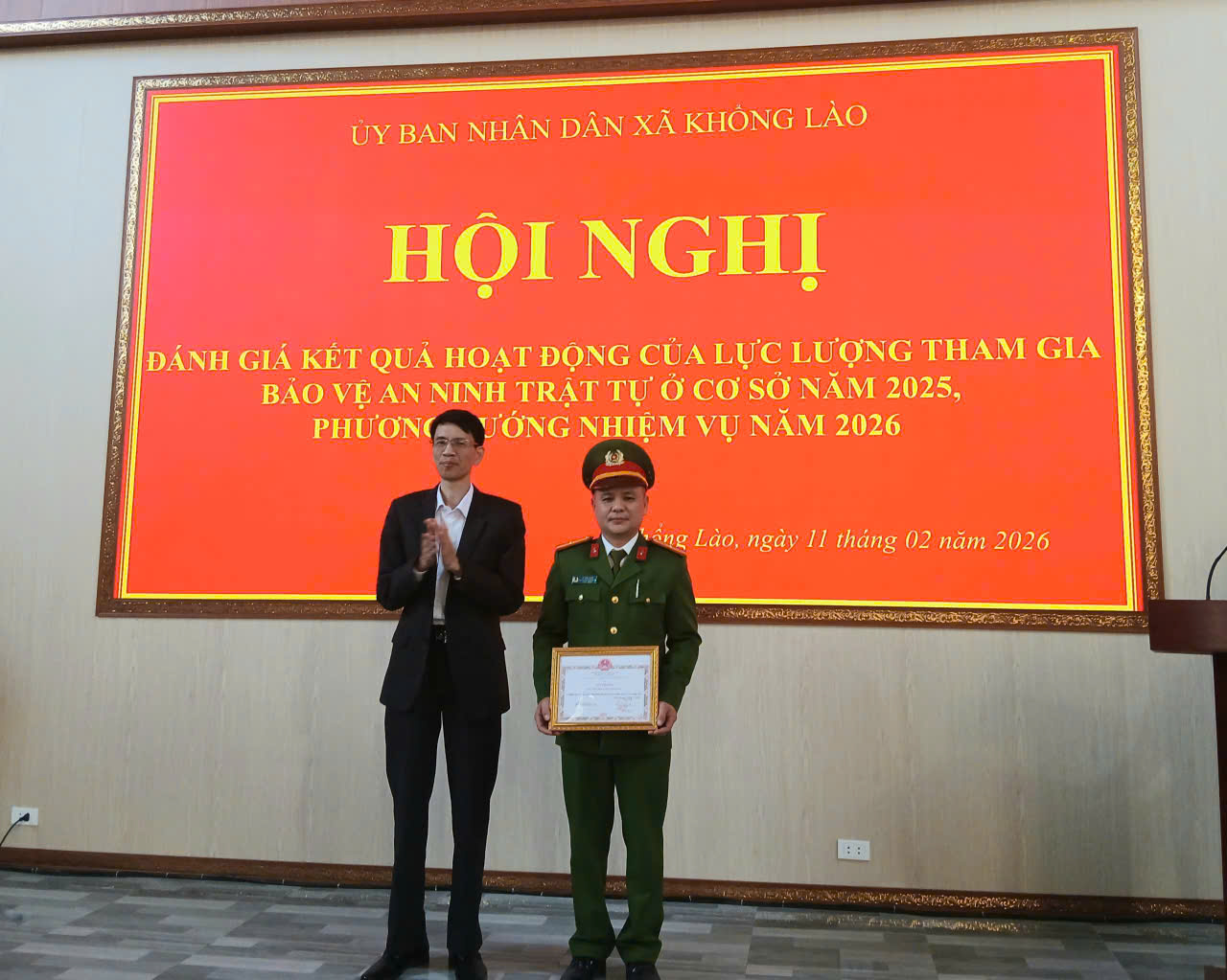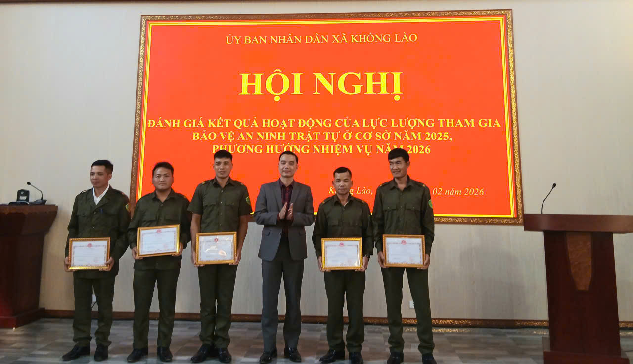 Nhân dịp này chủ tịch UBND xã Khổng Lào đã tặng giấy khen cho 02 tập thể và 05 cá nhân có thành tích xuất sắc trong hoạt động tham gia bảo vệ an ninh trật tự ở cơ sở năm 2025.